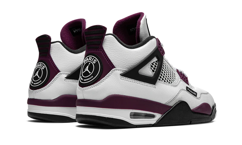 Az Air Jordan IV Retro PSG alapja a fekete és a fehér szín, melyet egy igazi francia szín, a bordó koronáz meg. Nem ez az egyetlen francia vonatkozású részlet a sneakeren (szinte csak az van rajta). A sarkán a Paris Saint-Germain logója látható - de egy kis csavarral, ugyanis a közepében levő Eiffel-tornyot a Jumpman ikonra cserélték. A cipő orránál egy "Paname" címke van, mely Párizsnak egyik beceneve, a talpbetétre pedig az "Ici c'est Paris." azaz az "Ez itt Párizs." felirat került.